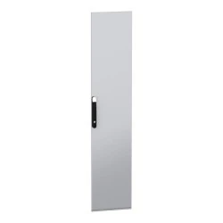 Stalowe drzwi przeznaczone do montażu w wolnostojącej, modułowej obudowie PanelSeT SFN ze stali zdekarbonizowanej do różnych zastosowań. Kompatybilne ze stalową, wolonstojącą obudową Spacial SM. Ich nominalna wysokość i szerokość wynoszą odpowiednio 1800 mm i 400 mm. Drzwi wykonane są z blachy stalowej, a uchwyt z poliamidu 6 z dodatkiem 30% włókna szklanego. Epoksydowo-poliestrowa powłoka proszkowa zapewnia gładki wygląd. Są w kolorze szarym (RAL 7035) z czarnym (RAL 9005) uchwytem. Stopień otwarcia drzwi wynosi do 120 stopni, co oznacza, że mogą być otwierane z dowolnej strony. Drzwi są wyposażone w czteropunktowy zamek z klamką, który ma 5 mm wkładkę z podwójnym prętem dla bezpieczeństwa. Ten produkt jest oznaczony ekologicznym znakiem Green Premium, co świadczy o minimalnym zużyciu substancji niebezpiecznych.