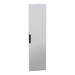 Stalowe drzwi przeznaczone do montażu w wolnostojącej, modułowej obudowie PanelSeT SFN ze stali zdekarbonizowanej do różnych zastosowań. Kompatybilne ze stalową, wolonstojącą obudową Spacial SM. Ich nominalna wysokość i szerokość wynoszą odpowiednio 1800 mm i 500 mm. Drzwi wykonane są z blachy stalowej, a uchwyt z poliamidu 6 z dodatkiem 30% włókna szklanego. Epoksydowo-poliestrowa powłoka proszkowa zapewnia gładki wygląd. Są w kolorze szarym (RAL 7035) z czarnym (RAL 9005) uchwytem. Stopień otwarcia drzwi wynosi do 120 stopni, co oznacza, że mogą być otwierane z dowolnej strony. Drzwi są wyposażone w czteropunktowy zamek z klamką, który ma 5 mm wkładkę z podwójnym prętem dla bezpieczeństwa. Ten produkt jest oznaczony ekologicznym znakiem Green Premium, co świadczy o minimalnym zużyciu substancji niebezpiecznych.