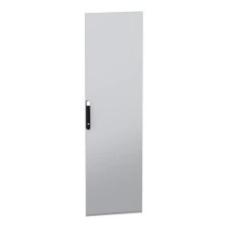 Stalowe drzwi przeznaczone do montażu w wolnostojącej, modułowej obudowie PanelSeT SFN ze stali zdekarbonizowanej do różnych zastosowań. Kompatybilne ze stalową, wolonstojącą obudową Spacial SM. Ich nominalna wysokość i szerokość wynoszą odpowiednio 2000 mm i 600 mm. Drzwi wykonane są z blachy stalowej, a uchwyt z poliamidu 6 z dodatkiem 30% włókna szklanego. Epoksydowo-poliestrowa powłoka proszkowa zapewnia gładki wygląd. Są w kolorze szarym (RAL 7035) z czarnym (RAL 9005) uchwytem. Stopień otwarcia drzwi wynosi do 120 stopni, co oznacza, że mogą być otwierane z dowolnej strony. Drzwi są wyposażone w czteropunktowy zamek z klamką, który ma 5 mm wkładkę z podwójnym prętem dla bezpieczeństwa. Ten produkt jest oznaczony ekologicznym znakiem Green Premium, co świadczy o minimalnym zużyciu substancji niebezpiecznych.