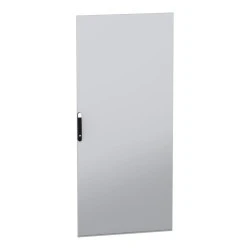 Stalowe drzwi przeznaczone do montażu w wolnostojącej, modułowej obudowie PanelSeT SFN ze stali zdekarbonizowanej do różnych zastosowań. Kompatybilne ze stalową, wolonstojącą obudową Spacial SM. Ich nominalna wysokość i szerokość wynoszą odpowiednio 2200 mm i 1000 mm. Drzwi wykonane są z blachy stalowej, a uchwyt z poliamidu 6 z dodatkiem 30% włókna szklanego. Epoksydowo-poliestrowa powłoka proszkowa zapewnia gładki wygląd. Są w kolorze szarym (RAL 7035) z czarnym (RAL 9005) uchwytem. Stopień otwarcia drzwi wynosi do 120 stopni, co oznacza, że mogą być otwierane z dowolnej strony. Drzwi są wyposażone w czteropunktowy zamek z klamką, który ma 5 mm wkładkę z podwójnym prętem dla bezpieczeństwa. Ten produkt jest oznaczony ekologicznym znakiem Green Premium, co świadczy o minimalnym zużyciu substancji niebezpiecznych.