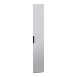 Stalowe drzwi przeznaczone do montażu w wolnostojącej, modułowej obudowie PanelSeT SFN ze stali zdekarbonizowanej do różnych zastosowań. Kompatybilne ze stalową, wolonstojącą obudową Spacial SM. Ich nominalna wysokość i szerokość wynoszą odpowiednio 2200 mm i 400 mm. Drzwi wykonane są z blachy stalowej, a uchwyt z poliamidu 6 z dodatkiem 30% włókna szklanego. Epoksydowo-poliestrowa powłoka proszkowa zapewnia gładki wygląd. Są w kolorze szarym (RAL 7035) z czarnym (RAL 9005) uchwytem. Stopień otwarcia drzwi wynosi do 120 stopni, co oznacza, że mogą być otwierane z dowolnej strony. Drzwi są wyposażone w czteropunktowy zamek z klamką, który ma 5 mm wkładkę z podwójnym prętem dla bezpieczeństwa. Ten produkt jest oznaczony ekologicznym znakiem Green Premium, co świadczy o minimalnym zużyciu substancji niebezpiecznych.
