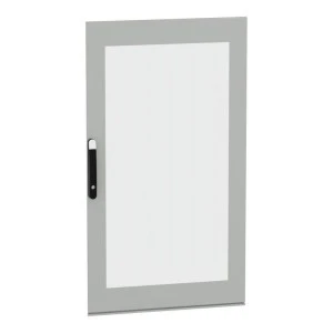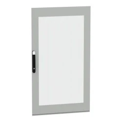 Przeszklone drzwi przeznaczone do montażu w wolnostojącej, modułowej obudowie PanelSeT SFN ze stali zdekarbonizowanej do różnych zastosowań. Ich nominalna wysokość i szerokość wynoszą odpowiednio 1400 mm i 800 mm. Drzwi wykonane są z blachy stalowej i szkła Securit, a uchwyt z poliamidu 6 z dodatkiem 30% włókna szklanego. Epoksydowo-poliestrowa powłoka proszkowa zapewnia gładki wygląd. Są w kolorze szarym (RAL 7035) z czarnym (RAL 9005) uchwytem. Stopień otwarcia drzwi wynosi do 120 stopni, co oznacza, że mogą być otwierane z dowolnej strony. Drzwi są wyposażone w czteropunktowy zamek z klamką, który ma 5 mm wkładkę z podwójnym prętem dla bezpieczeństwa. Ten produkt jest oznaczony ekologicznym znakiem Green Premium, co świadczy o minimalnym zużyciu substancji niebezpiecznych.