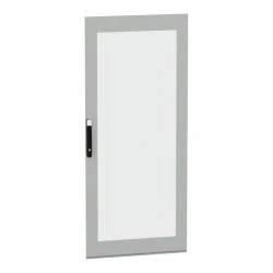 Przeszklone drzwi przeznaczone do montażu w wolnostojącej, modułowej obudowie PanelSeT SFN ze stali zdekarbonizowanej do różnych zastosowań. Kompatybilne ze stalową, wolonstojącą obudową Spacial SM. Ich nominalna wysokość i szerokość wynosi odpowiednio 2000 mm i 1200 mm. Drzwi wykonane są z blachy stalowej i szkła Securit, a uchwyt z poliamidu 6 z dodatkiem 30% włókna szklanego. Epoksydowo-poliestrowa powłoka proszkowa zapewnia gładki wygląd. Są w kolorze szarym (RAL 7035) z czarnym (RAL 9005) uchwytem. Stopień otwarcia drzwi wynosi do 120 stopni. Drzwi są wyposażone w czteropunktowy zamek z klamką, który ma 5 mm wkładkę z podwójnym prętem dla bezpieczeństwa. Ten produkt jest oznaczony ekologicznym znakiem Green Premium, co świadczy o minimalnym zużyciu substancji niebezpiecznych.