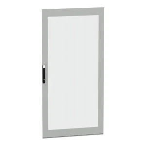 Przeszklone drzwi przeznaczone do montażu w wolnostojącej, modułowej obudowie PanelSeT SFN ze stali zdekarbonizowanej do różnych zastosowań. Kompatybilne ze stalową, wolonstojącą obudową Spacial SM. Ich nominalna wysokość i szerokość wynosi odpowiednio 2000 mm i 1000 mm. Drzwi wykonane są z blachy stalowej i szkła Securit, a uchwyt z poliamidu 6 z dodatkiem 30% włókna szklanego. Epoksydowo-poliestrowa powłoka proszkowa zapewnia gładki wygląd. Są w kolorze szarym (RAL 7035) z czarnym (RAL 9005) uchwytem. Stopień otwarcia drzwi wynosi do 120 stopni, co oznacza, że mogą być otwierane z dowolnej strony. Drzwi są wyposażone w czteropunktowy zamek z klamką, który ma 5 mm wkładkę z podwójnym prętem dla bezpieczeństwa. Ten produkt jest oznaczony ekologicznym znakiem Green Premium, co świadczy o minimalnym zużyciu substancji niebezpiecznych.