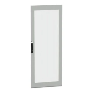 Przeszklone drzwi przeznaczone do montażu w wolnostojącej, modułowej obudowie PanelSeT SFN ze stali zdekarbonizowanej do różnych zastosowań. Kompatybilne ze stalową, wolonstojącą obudową Spacial SM. Ich nominalna wysokość i szerokość wynosi odpowiednio 2200 mm i 1200 mm. Drzwi wykonane są z blachy stalowej i szkła Securit, a uchwyt z poliamidu 6 z dodatkiem 30% włókna szklanego. Epoksydowo-poliestrowa powłoka proszkowa zapewnia gładki wygląd. Są w kolorze szarym (RAL 7035) z czarnym (RAL 9005) uchwytem. Stopień otwarcia drzwi wynosi do 120 stopni. Drzwi są wyposażone w czteropunktowy zamek z klamką, który ma 5 mm wkładkę z podwójnym prętem dla bezpieczeństwa. Ten produkt jest oznaczony ekologicznym znakiem Green Premium, co świadczy o minimalnym zużyciu substancji niebezpiecznych.