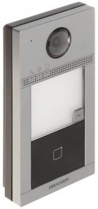 to Stacja bramowa DS-KV8113-WME1(C)/Surface firmy HIKVISION to zintegrowany panel bramowy wideodomofonu IP, wyposażony w kamerę Full HD o rozdzielczości 1920 x 1080 px oraz oświetlacz podczerwieni IR. Panel posiada wbudowany czytnik zbliżeniowy MIFARE obsługujący identyfikatory działające w paśmie 13,56 MHz. Łączność z innymi elementami systemu może odbywać się dwojako: bezprzewodowo, poprzez wbudowany moduł Wi-Fi oraz przewodowo, przy wykorzystaniu switcha POE i okablowania przewodem typu skrętka.