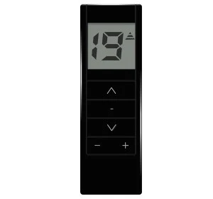 Dziewiętnastokanałowy pilot wyposażony w czytelny wyświetlacz LCD pokazujący numer kanału. Pilot wyświetla kierunek pracy napędu, komunikat o rozładowanej baterii oraz tryb lamelowania. Występuje w dwóch wariantach kolorystycznych obudowy: białym i czarnym. Magnetyczna zawieszka zapewnia nowoczesny design i wygodę obsługi przy podnoszeniu i odkładaniu pilota. Zasilanie - bateria CR-2430.