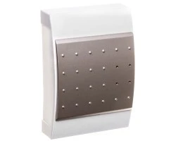 Dzwonek elektroniczny,obudowa z tworzywa sztucznego (kolor srebrny),możliwość regulacji siły głosu,układ grający zasilany dwiema bateriami R6 1,5 V,wyzwalanie po podaniu napięcia (8÷230) V AC na zaciski dzwonka,dźwięk: kolejna z 16 melodii,poziom dźwięku: ok. 84 dB.