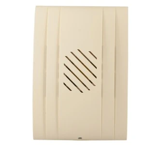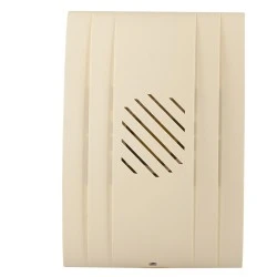 Elektroniczny dzwonek trójtonowy,regulacja głośności,obudowa z tworzywa sztucznego (kolor beżowy),dźwięk: trzy na przemian brzmiące tony,poziom dźwięku: ok. 90 dB.
