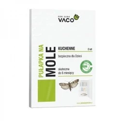 Pułapka na mole spożywcze. Skutecznie likwiduje szkodniki w szafkach kuchennych, spiżarniach i innych miejscach przechowywania żywności. Pułapka to produkt oparty na działaniu feromonu, dzięki której zostaje przerwany cykl rozrodczy mola spożywczego (mklika, omacnicy spichrzanki). Produkt jest bezwonny, nie zawiera substancji biobójczych dzięki czemu może być stosowany w pobliżu żywności. Pułapka na mole jest całkowicie bezpieczna dla całej rodziny i zwierząt domowych. Działa do 6 tygodni od momentu rozłożenia pułapki, powodując natychmiastowe odławianie owadów na powierzchni 50 m2.