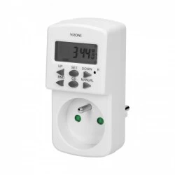 Programator z wyświetlaczem LCD do ustawiania czasu włączania i wyłączania urządzeń elektrycznych takich jak: oświetlenie, ogrzewacze wody, reklamy itp. Urządzenie posiada: 10 programów czasowych, 7 kombinacji dnia tygodnia, funkcja czasu letniego i zimowego, funkcja COUNT DOWN, tryb pracy 12 lub 24 godzinny. Wewnętrzny akumulator: NiMH 1,2V > 100h.