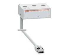 EXS3032 to 3 fazowy elektroniczny przetwornik prądu, prąd znamionowy 32A, który dzięki kompaktowym rozmiarom można zainstalować tuż za wyłącznikiem nadprądowym. Łączy się go z modułem pomiaru prądów EXS4000 za pomocą przewodu RJ45 o długości 2 metrów, dzięki czemu połączenie jest szybkie i niezawodne.