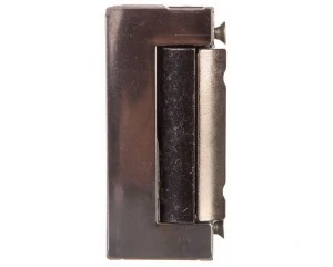 Zaczep typu radioanego. Specjalna konstrukcja mechanizmu języka elektrozaczepu powoduje otwarcie przy minimalnym wychyleniu. Umożliwia to montaż elektrozaczepu przy mniejszym podcięciu ościeżnicy. Uniwersalny lewy/prawy symetryczny. Regulacja języka elektrozaczepu w zakresie 3mm. Rozstaw śrub montażowych 52mm.