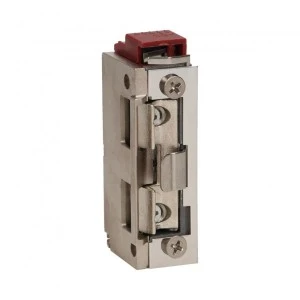 Elektrozaczep symetryczny, małogabarytowy OR-EZ-4037. Działanie jego polega na ciągłym podawaniu napięcia, powodującym blokadę zaczepu. Wyposażony jest w mikrostyk, za pomocą którego możemy sterować syreną lub sygnalizatorem, który może sygnalizować niedomknięte drzwi. Elektrozaczep został wyposażony w NISKOPRĄDOWĄ cewkę o szerokim zakresie napięcia , pobierającą prąd 280mA dla 12V napięcia stałego i 250mA dla 12V napięcia zmiennego.