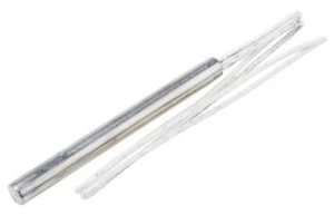 Grzałki wkładkowe - rozmiary brytyjskie. Grzałki wkładkowe mają przewody o wysokiej temperaturze, które mogą osiągnąć temperaturę 450°C. Odporna na silne wibracje nasadka ceramiczna Głębokie otwory w ceramicznej nasadce zapobiegają postrzępieniu przewodu, gdy jest zgięty Przewód o rezystancji niklowo-chromowej zapewnia maksymalną żywotność podgrzewacza Przyspawane tarcze TIG zapobiegają zanieczyszczeniu i chłonności wilgoci Izolacja przewodów z włókna szklanego Przewody odprowadzeń 10"