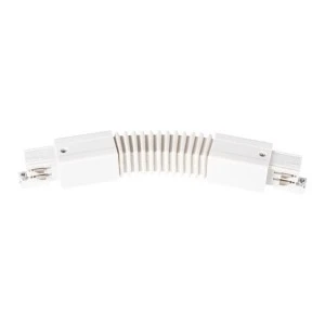 Łącznik elastyczny z wtykami L i R przeznaczony do połączenia dwóch odcinków szyny pod dowolnym kątem; kolor biały.