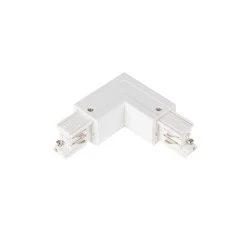 Łącznik narożny z wtykami L i R przeznaczony do montażu na kształt litery "L" dwóch odcinków szynoprzewodu pod kątem prostym; kolor biały.