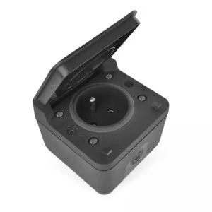 Gniazdo pojedyncze natynkowe IP55, gniazdo pojedyncze ze stykiem ochronnym i przesłonami torów,typ połączenia: zacisk automatyczny, design: Cyclone, napięcie: 250 V~/16 A max., sposób montażu: na ścianę, rodzaj: pojedyncze wodoodporne, stopień ochrony: IP55, kolor: szary, okres gwarancyjny: 2 lata