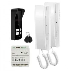 W zestawie znajduje się również zasilacz na szynę DIN, który umożliwia łatwą instalację w rozdzielni elektrycznej. To rozwiązanie zapewnia stabilne i bezpieczne zasilanie całego systemu domofonowego, a dzięki kablom schowanym w ścianie, dodaje estetyki wykończenia.