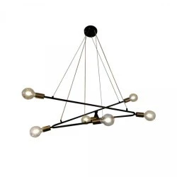 Estrella 6 wisząca czarna - to jedna z naszych nowości, stworzona dla tych, którzy lubują się w industrialnych i surowych klimatach. Przedstawiamy Państwu oświetlenie na czarnym, metalowym stelażu z prętami, o dość długim, lecz regulowanym przewodzie. Oświetlenie to posiada 6 źródeł światła. Ta niecodzienna, interesująca lampa, z całą pewnością wzbudzi podziw Twoich gości. Dzięki niej, uzyskacie Państwo, przepięknie rozprzestrzeniające się światło, nad stołem w jadalni czy w salonie. Jak wcześniej wspomnieliśmy, produkt idealnie wpasowuje się w industrialny styl, który w punkt pasowałby w ceglane otoczenie. Z drugiej jednak strony, taki model oświetlenia, oryginalnie by przełamywał luksusowy wystrój salonu. Lampa ta, zawiera także złote elementy, co dodatkowo podnosi jej efektywność.