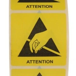 Etykiety są samoprzylepne i dostarczane w różnych rozmiarach. Etykiety ESD są ostrzeżeniem przed