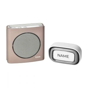 Bezprzewodowy bateryjny dzwonek o zasięgu 200 m w terenie otwartym, z regulacją głośności i dźwięku dzwonka spośród 6 dostępnych, co pozwala ustawić odpowiedni sygnał w każdej sytuacji. Wzornictwo typu soft touch i różne warianty kolorystyczne dają możliwość idealnego dopasowania do każdego wnętrza. Funkcja powiadamiania o niskim poziomie energii informuje o konieczności wymiany baterii. Przycisk dzwonkowy wyposażony jest w wizytówkę, na której można umieścić nazwisko lub nazwę firmy. Dostępny w różnych wariantach kolorystycznych.