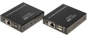 Extender pozwala także na przedłużenie portu USB 2.0 np. w celu sterowania rejestratorem za pomocą myszki Obsługa funkcji KVM, Obsługa HDR10 Przejście sygnału HDMI w nadajniku Obsługa EDID Ochrona ESD |