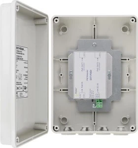 Extender EXT-POE4 w obudowie hermetycznej Przeznaczenie Zwiększa zasięg danych Ethernet oraz zasilania PoE o kolejne 100m. Umożliwia podłączenie dwóch kamer IP PoE przy wykorzystaniu jednego przewodu. Zasilanie 44 - 57 V DC możliwość zasilania ze switcha PoE lub zewnętrznego zasilacza Wymiary 198 x 148 x 78 [+/-2 mm] Dławnice 4 x Φ=6÷13mm Zabezpieczenia SCP, OLP Wejście PoE PoE IN: IEEE 802.3af/at Wyjście PoE PoE OUT1: nie zgodne z IEEE 802.3af PoE OUT2: nie zgodne z IEEE 802.3af Sumaryczna moc wyjściowa 20W Stopień ochrony EN60529 IP 56 Gwarancja 2 lata Uwagi - przeznaczony do pracy w sieciach 10/100 Mb/s - możliwość montażu na słupie (wymaga zastosowania adaptera OZB2-opcja)