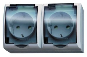 Cedar Gniazdo hermetyczne podwójne SCHUKO z PE 16A IP44 biały GWN240PC01