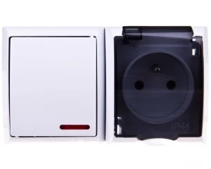 FALA Łącznik hermetyczny pojedynczy z podświetleniem LED + gniazdo hermetyczne pojedyncze z/u z klapką białe ZH-Ł1SG/00/w