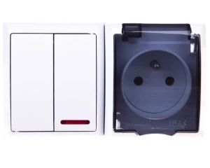 JANTAR-bis Łącznik dwubiegunowy z podświetleniem n/t IP44 biały WNT-9J-b/S