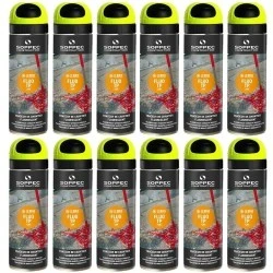 Farba FLUO TP SOPPEC to specjalna farba do znakowania wszelkich prac wykonywanych wewnątrz i na zewnątrz.. Dzięki doskonałym właściwościom farba ta wykazuje bardzo dobrą przyczepność do każdego typu podłoża (asfaltu, skały, gruntu, betonu itp.), nawet w trudnych warunkach atmosferycznych (wilgotność, niskie temperatury itp.). Dzięki fluorescencji oznaczenia są widoczne nawet z dalekiej odległości. Prezentowana farba cieszy się dużym uznaniem między innymi: