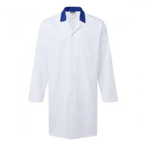 Fartuch bez kieszeni do przemysłu spożywczego 2210 biały/niebieski rozmiar XS