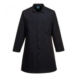 Dzięki zakrytemu zapięciu i wewnętrznej kieszeni fartuch spełnia normy higieniczne i doskonale sprawdza się w przemyśle spożywczym.