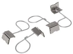 Zaciski filtra RS. Zaciski przeznaczone do mocowania filtrów paneli RS w przedniej ramie filtra ładującego. Po zamontowaniu na ramie zacisk można obracać, aby umożliwić wymianę filtra.