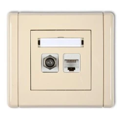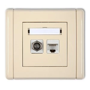 FLEXI Gniazdo antenowe pojedyncze typu F (SAT) + gniazdo komputerowe pojedyncze 1xRJ45 kat. 5e 8‑stykowe beżowy 1FGFK‑1