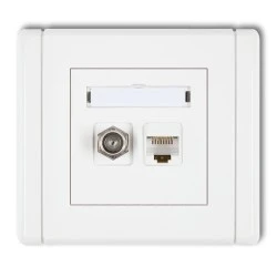 FLEXI Gniazdo antenowe pojedyncze typu F (SAT) + gniazdo komputerowe pojedyncze 1xRJ45 kat. 5e 8‑stykowe biały FGFK‑1