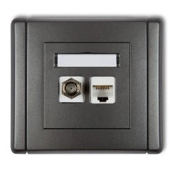 FLEXI Gniazdo antenowe pojedyncze typu F (SAT) + gniazdo komputerowe pojedyncze 1xRJ45 kat. 5e 8‑stykowe grafitowy 11FGFK‑1