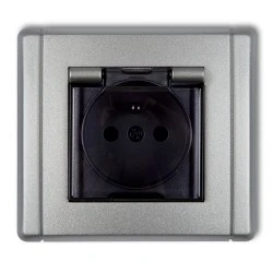 FLEXI Gniazdo bryzgoszczelne z/u (klapka dymna) srebrny metalik 7FGPB‑1zdp