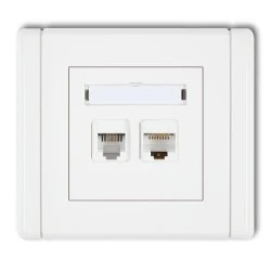 FLEXI Gniazdo telefoniczne pojedyncze 1xRJ11 + komputerowe pojedyncze 1xRJ45, kat. 5e, 8‑stykowe, beznarzędziowe biały FGTK