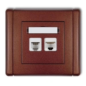 FLEXI Gniazdo telefoniczne pojedyncze 1xRJ11 + komputerowe pojedyncze 1xRJ45, kat. 5e, 8‑stykowe, beznarzędziowe brązowy metalik