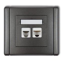 FLEXI Gniazdo telefoniczne pojedyncze 1xRJ11 + komputerowe pojedyncze 1xRJ45, kat. 5e, 8‑stykowe, beznarzędziowe grafitowy 11FGT