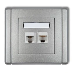 FLEXI Gniazdo telefoniczne pojedyncze 1xRJ11 + komputerowe pojedyncze 1xRJ45, kat. 5e, 8‑stykowe, beznarzędziowe srebrny metalik