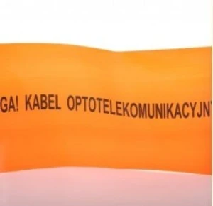 Folia kablowa do światłowodów bez wkładki stalowej o następujących parametrach: szerokość 10 cm, nawój 500 mb, nadruk UWAGA KABEL OPTOTELEKOMUNIKACYJNY