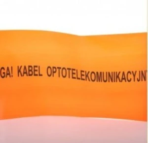 Folia kablowa do światłowodów bez wkładki stalowej o następujących parametrach: szerokość 20 cm, nawój 100 mb , nadruk UWAGA KABEL OPTOTELEKOMUNIKACYJNY