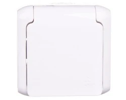 AKCENT Gniazdo bryzgoszczelne z/u IP44 klapka biała GPH-1AZ/00/w
