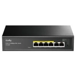 6-portowy przełącznik PoE 10/100M z 4 portami PoE, niezarządzalny, do użytku biurkowego, obsługuje 4 porty PoE+ IEEE 802.3at (porty 1–4), moc do 30W na port, tryb CCTV (zasięg do 250m przy 10Mb/s), bez wentylatora, ochrona przepięciowa ±4KV, stalowa obudowa, funkcja Watchdog, zasilanie wewnętrzne 60W.