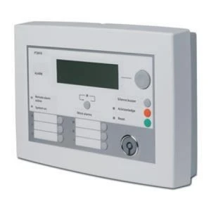 Panel informacyjno-kontrolny z dużym podświetlanym wyświetlaczem (6 linii po 40 znaków każda) do stosowania z adresowalnymi systemami sygnalizacji pożaru Sinteso FS20 i Cerberus PRO FS720.