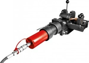 Giętarka do osiowego skręcania szyn HSk 5010 Giętarka do osiowego skręcania szyn prądowych Al i Cu (w „śmigło”): - szerokość szyny 20 ÷ 50 mm - grubość szyny 3 ÷ 10 mm - zakres kąta skręcenia 0 ÷ 90° Cechy szczególne: - wyposażona w regulator kąta z czujnikiem elektrycznym (wyłącznikiem krańcowym), zapewniającym powtarzalność zadanego kąta skręcenia szyny - wyposażona we wkładkę dystansową uchwytu obrotowego do szyn o grubości do 5 mm - wyposażona we wspornik regulacyjny szerokości szyny Współpracuje z agregatami hydraulicznymi AH 500 i AH 550. Wymiary (DxSxW): 720x300x190 mm; Masa: 42 kg; Ciśnienie robocze: 380 bar