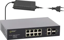 Switch PoE 12-portowy SFG108-90W do 8 kamer IP Przeznaczenie SFG108-90W to 12-portowy switch PoE przeznaczony do zasilania kamer IP pracujących w standardzie 802.3af/at. Switch na portach od 1 do 8 posiada funkcję automatycznej detekcji urządzeń zasilanych w standardzie PoE/PoE+. Typ switcha standard Zasilanie 100 - 240 V AC desktop: 90W/1.75A Porty 12 Porty PoE RJ45 8 x 1 Gb/s - IEEE 802.3af/at, PoE+ 52V DC, 30W/port, 80W/wszystkie porty UPLINK Porty RJ45 2 x 1 Gb/s - TP/9, TP/10 UPLINK Gniazda SFP 2 x 1 Gb/s - SFP/11, SFP12 Wymiary montażowe 1U Wymiary 220 x 44 x 150 [+/-2 mm] Montaż standard / RACK 19" Sygnalizacja sygnalizacja optyczna LED Gwarancja 2 lata Uwagi - w zestawie dwie blachy mocujące do podłoża, uchwyt do RACK 19”